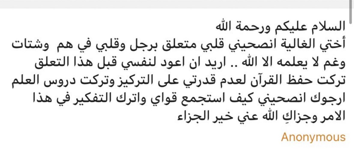 احضريه والغِي المتابعه منه ولا تُراقبينه وان فكرتي به اشغلي نفسك مباشرة.. وعليكِ بغض البصر حتى لا تقعين بالفِتنة .. وأخيرًا الدعاء فإن الدعاء هي الحاجز التي بينك وبين الفِتن قال الرسول ﷺ تُعرض الفتن على القلوب كالحصير عودًا عودًا ، والله يحفظك من الفِتن ماظهر منها ومابطن🤍