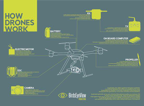 (الاحداثيات الجغرافية) في جميع الأحوال الجوية وفي أي مكان على الأرض أو بالقرب منها، وعلى جهاز استشعار المسافة بالموجات فوق الصوتية لتجنب العقبات في الهواء اثناء الطيران، وهو يتميز بأنه ذاتي التحكم يعمل بكود برمجي قوي وقابل للتطوير, أما التحكم فيتم عن طريق شبكة لاسلكية WiFi.
