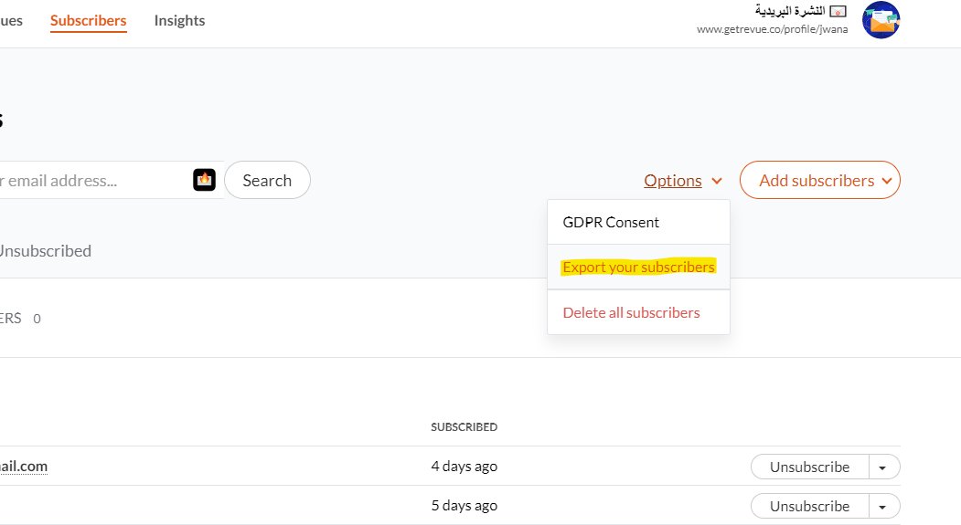 • طريقة إستخراج نشراتك البريدية من Revue 📧
