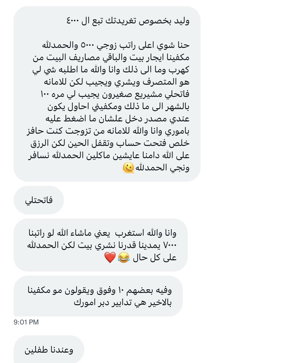 الحين نفسي اعرف ليه الناس ماتصدق ان عادي تحصل واحد متزوج وراتبه 4000 وعايش ومبسوط ؟