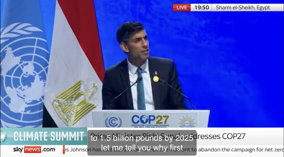 عاد ريشي للاجتماع والآن يلقي خطابه في قمة كوب 27.