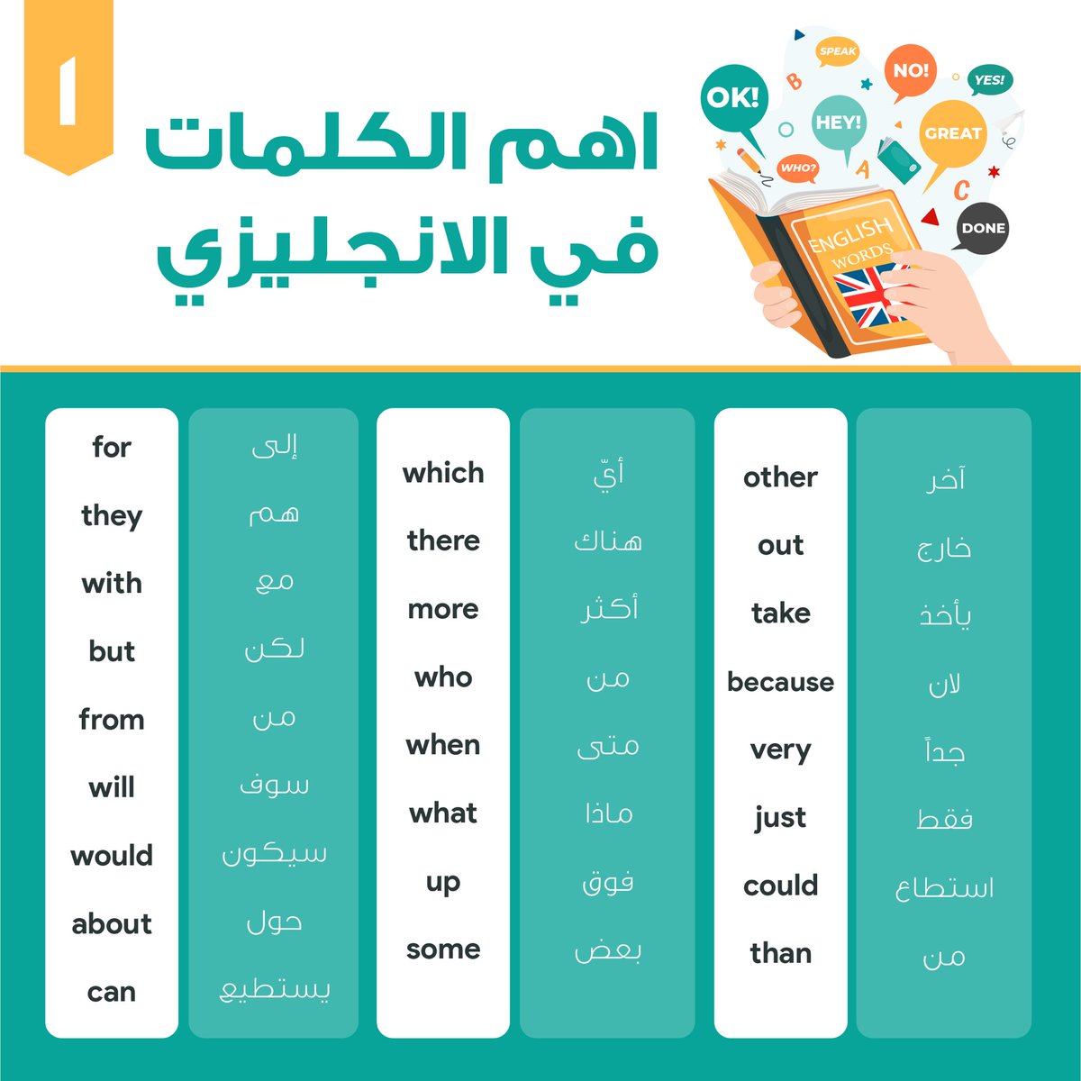 🚨 جمعت لك أهم 100 كلمة تتكرر في الانجليزي بناء على ابحاث عميقة وتحليل نصوص تتضمن اكتر من ١٥ ألف كلمة! 📚