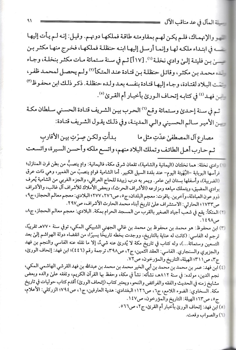 وفيما يلي بضع صفحات من ترجمة الشريف قتادة، بدأ بترجمة تقي الدين الفاسي في العقد الثمين: