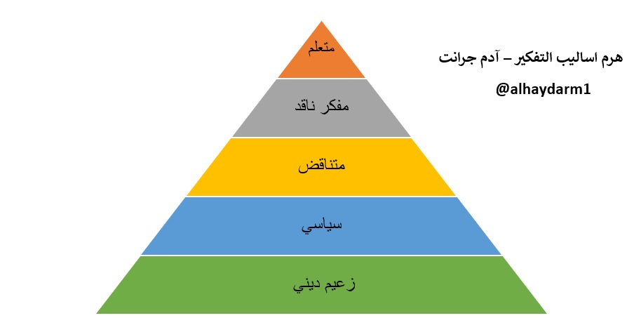 ذكر آدم جرانت انه خلال العام الماضي اعاد التفكير في اكثر من ٢٠ موضوع او فكره حتى تبين انه كان مخطئ. هذا يعني ان الكاتب نفسه يمتلك نمط تفكير المتعلم او الناقد.