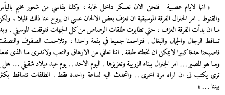 كل مربع يقاتل كوحدةمتماسكة , وبعدها قرر يرفه عن جنودة عشان روحهم المعنوية ترتفع شوية مؤملا في ليلة هادئة وطلب من قائد فصيل الموسيقى انو يعمل زي احتفال تعزف فيه الفرقة الموسيقية ويكونوا الجنود حضور ووصاهم يتوصوا بالعشاء وتراص الجنود في صفوف للاحتفال وبدأت الالحان تزيل عنهم التوتر