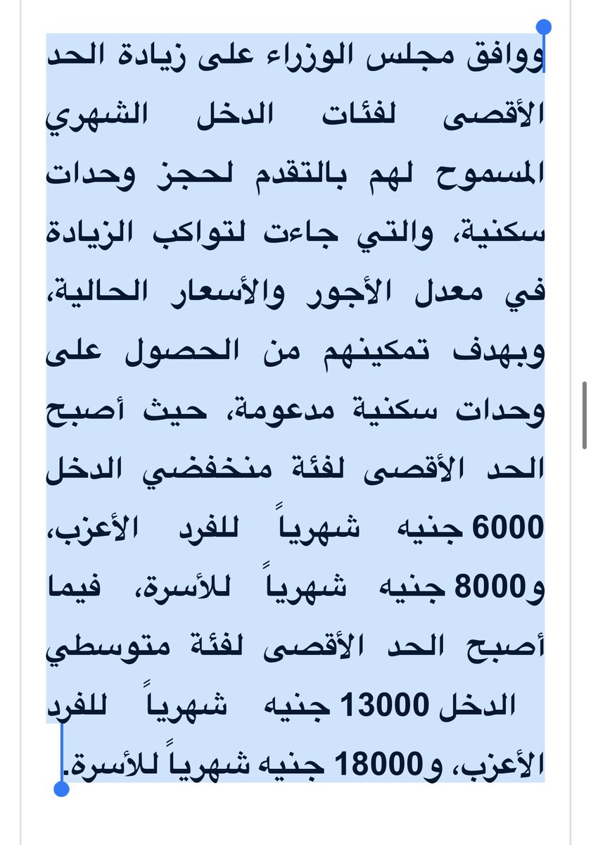 ٢- وأنت متوسط الدخل بالنسبة للحكومة لو دخلك حتى ١٣ ألف جنيه للأعزب و ١٨ ألف جنيه للأسرة