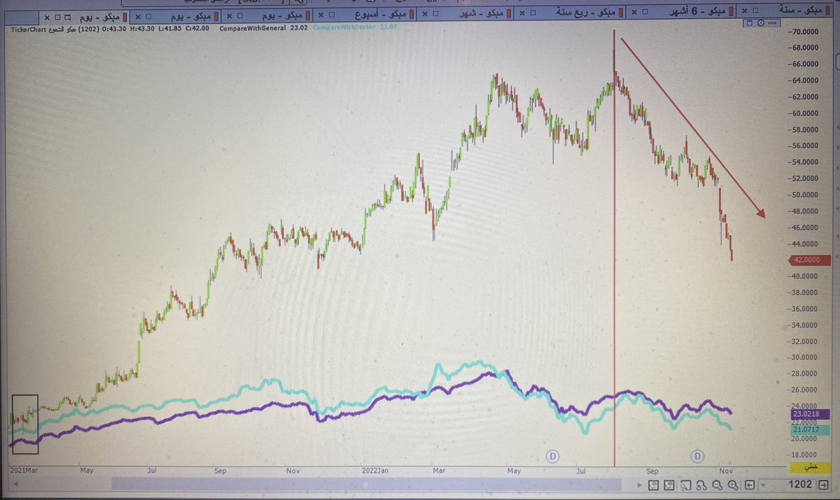 سهم مبكو ومقارنة بحركته السعريه ومؤشر السوق ومؤشر القطاع