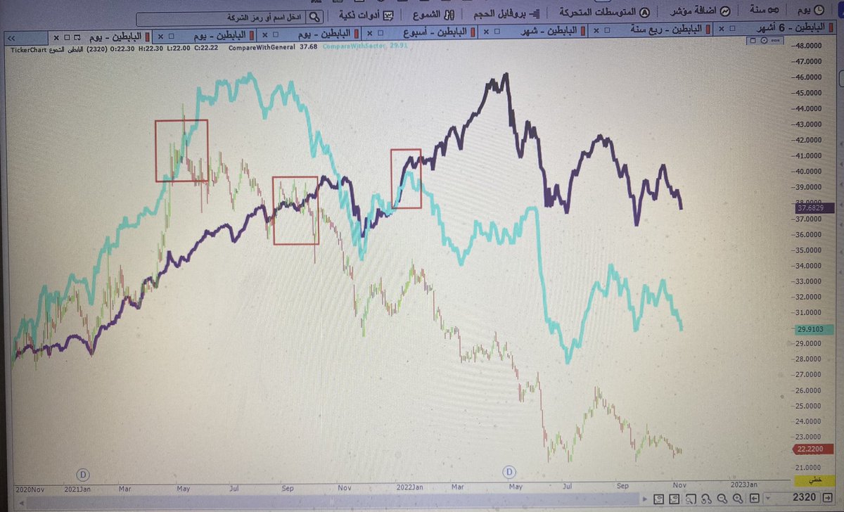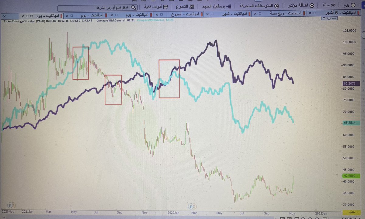 سهم أميانتيت كسر السعر مؤشر القطاع ثم مؤشر السوق ولاحظ مؤشر القطاع يكسر مؤشر السوق هل توجد أسهم عملت نفس الحركة
