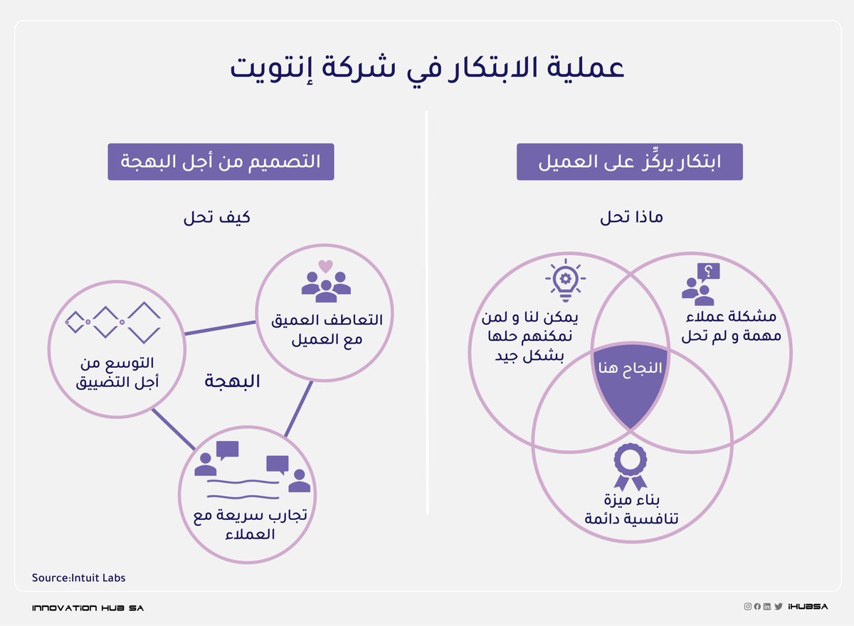 "في إنتويت، الابتكار هو مهمة الجميع" براد سميث، رئيس مجلس الإدارة السابق. عملية الابتكار في إنتويت مبنية على منهجية التفكير التصميمي و تتكون من إطاري عمل هما: