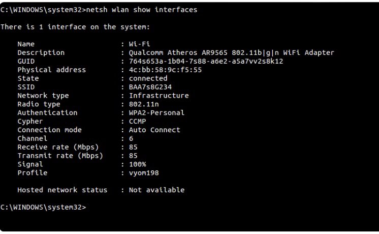 > netsh wlan show profiles name=" اكتب اسم شبكة الإنترنت اللي حاب تعرف الرقم السري لها" key=clear