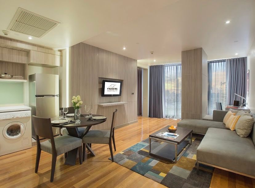 Fraser Suites Sukhumvit Bangkok شقق فندقية ممتاز أكثر أمان خلف الحي العربي يوجد بالقرب منه هايبر ماركت كبير وفي المقابل المستشفى الامريكي ولديهم توصيل توك توك الى الحي العربي مجاناً وبعض المجمعات القريبه .