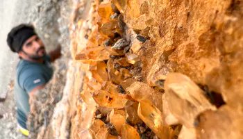 شاب مهتم بجمع وحجر المعادن والأحجار الكريمة