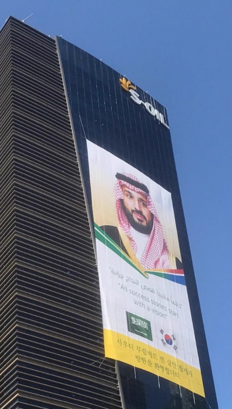 لافتة ترحيبية تحمل صورة ولي العهد الأمير #محمد_بن_سلمان تُزيّن مبنى شركة إس- أويل في العاصمة الكوريـة سيئول. #السعودية #كوريا_الجنوبيه