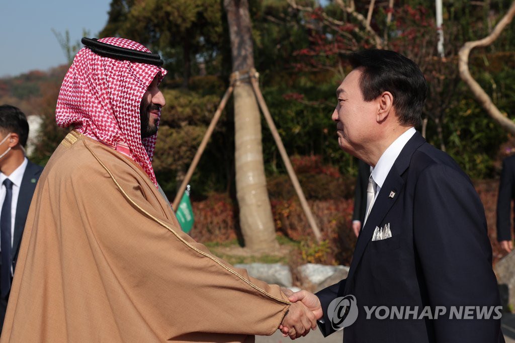 الرئيس الكوري الجنوبي يون يلتقي مع ولي العهد الأمير #محمد_بن_سلمان ، في الخبر الصحيفة الكوريّة تصفه بـ "القوة الحقيقية للمملكة العربية السعودية" 🇰🇷💚🇸🇦