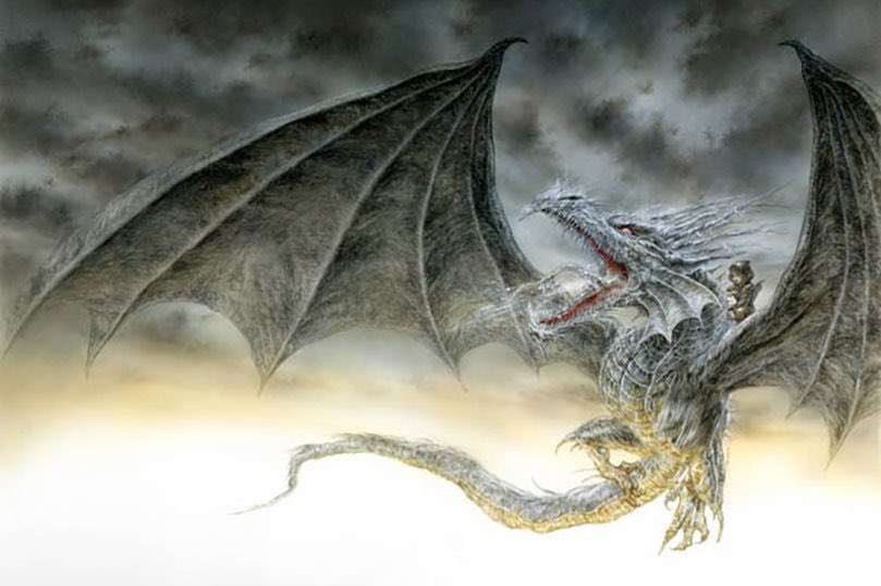 على اظهر التنانين ركب رجال يحملون السياط والرماح ويرتدون ازياء عسكرية…اشار راكب التنين برمحه نحو مباني المزرعة عبر الحقول فنظرت ادارا ، ورأت هال الذي خرج يواجههم ، يضاهي تنينه الاخضر تنانينهم حجماً.
