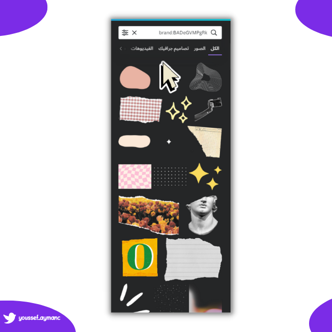 🔽 كانفا يوفر لك مجموعة ضخمة من الأكواد اللي تقدر من خلالها تجيب عناصر رهيبة تساعدك على اظهار احترافيتك في كانفا.