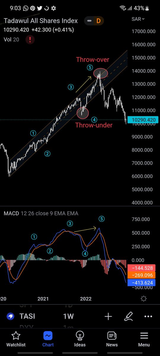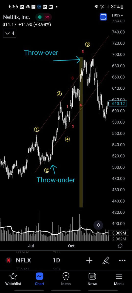 من ضمن العلامات في throw-over ... هو تزايد الفوليوم عند نهاية الموجة الخامسة لكسر الترند بشكل وهمي