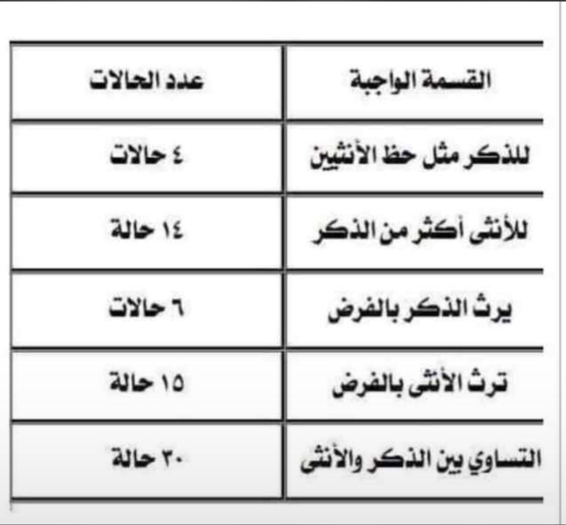 3– الابن البكر يُعطى ضعفي الابن الثاني والثالث فإذا كانوا 3 أبناء يأخذ الابن البكر النصف ويأخذ الابن الثاني والثالث الربع لكل واحد منهما