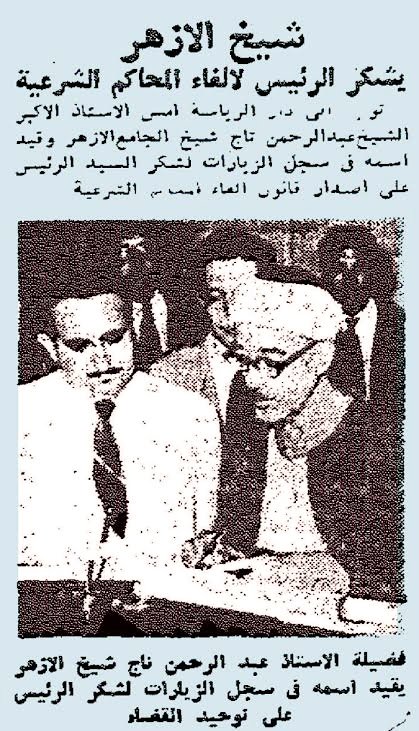 و بينما نشرت الصحف المصرية يوم 26 سبتمبر 1955 تهنئات كبار الشيوخ بما فيهم شيخ الأزهر عبدالرحمن تاج وهو يشكر الرئيس جمال عبدالناصر على هذه الخطوة التحررية..