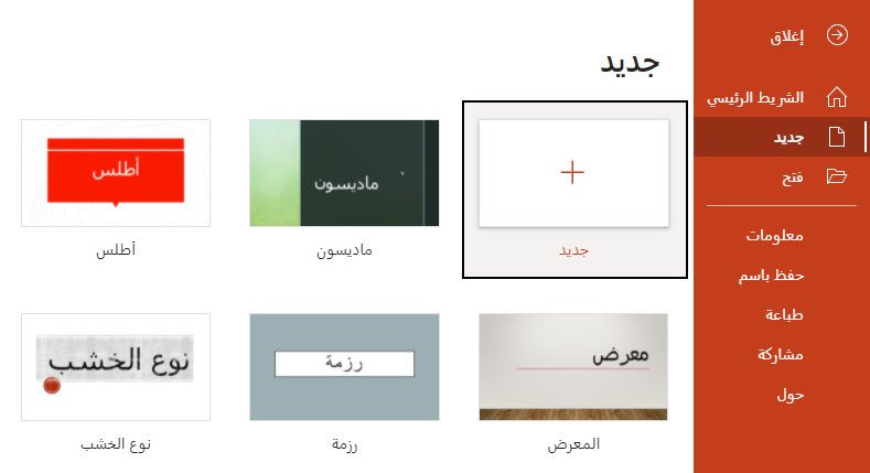 • Ctrl + N: إنشاء عرض تقديمي جديد.