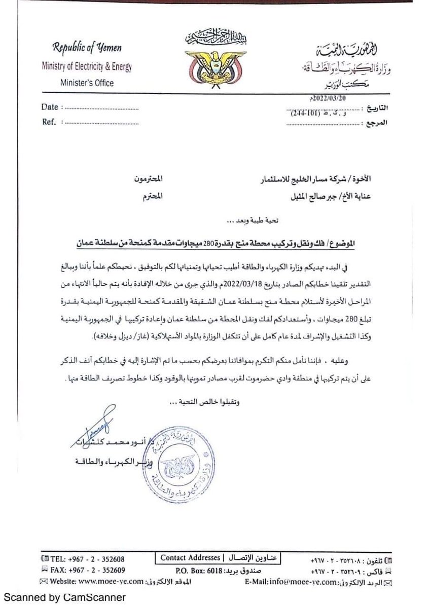 من طاقتها وبحسب كلام الخبراء ان تكلفت صيانتها تتجاوز سعرها وسيتكرر الامر بشكل كثير والصدمة هي عندما علم الرئيس ان المحطة هي في الاساء نفسها الممنوحة "كمنحة" من شركة مسار الخليج للاستثمار!