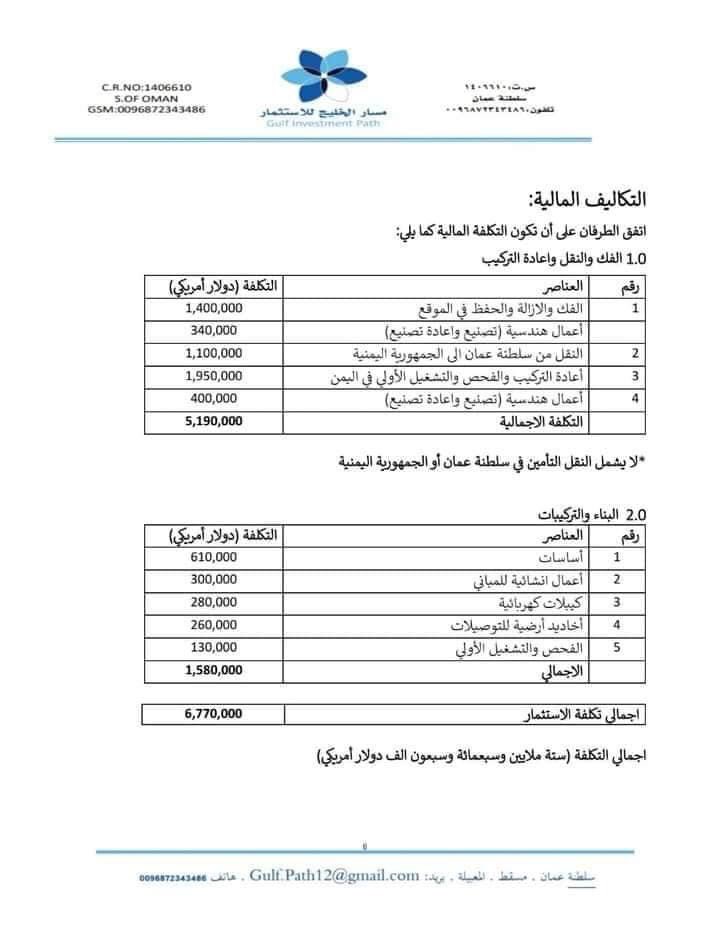 ثم اني لاحظت ان هناك زخم اعلامي بجعل دولة عمان هي المانحة وهذا غير صحيح فالشركة هي شركة خاصة في عمان ومحاولة الاصطياد في الماء العكر وتجميل صورة عمان مع الاحترام للاشقاء طبعا وذلك على حساب التحالف ممثلة في السعودية ودولة الامارات امر مرفوض وهو يدار من مطابخ معادية للوطن ..
