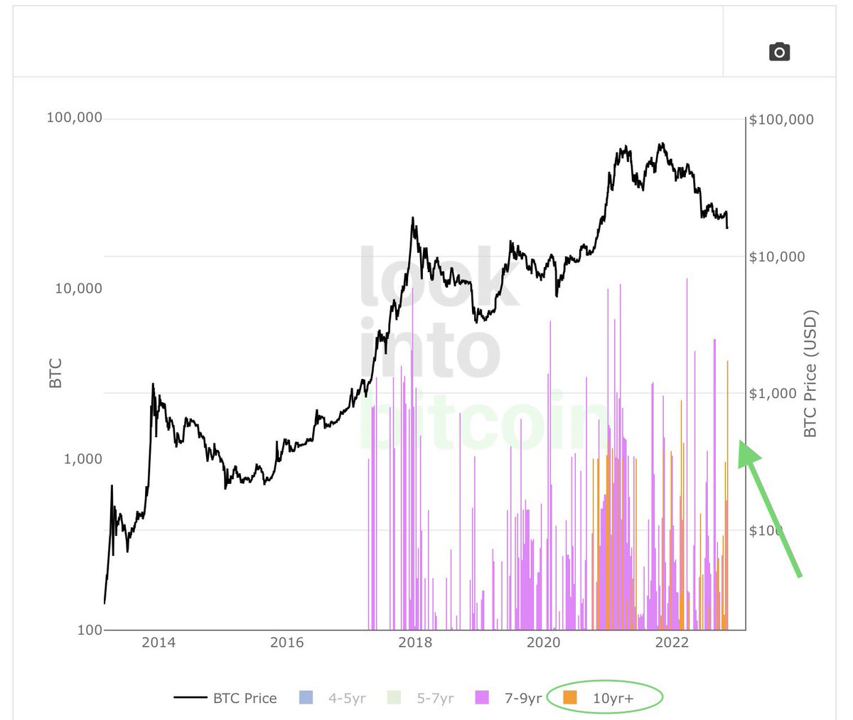 Ilość najmniejszych portfeli z kolei stale rośnie. Ale to co ciekawe to fakt, że wzrasta też ilość portfeli z ilością #BTC większą niż 10k. Na wykresie widzimy dynamiczny skok jeszcze przed samym upadkiem FTXa. Po tym wydarzeniu trend wciąż jest silny.