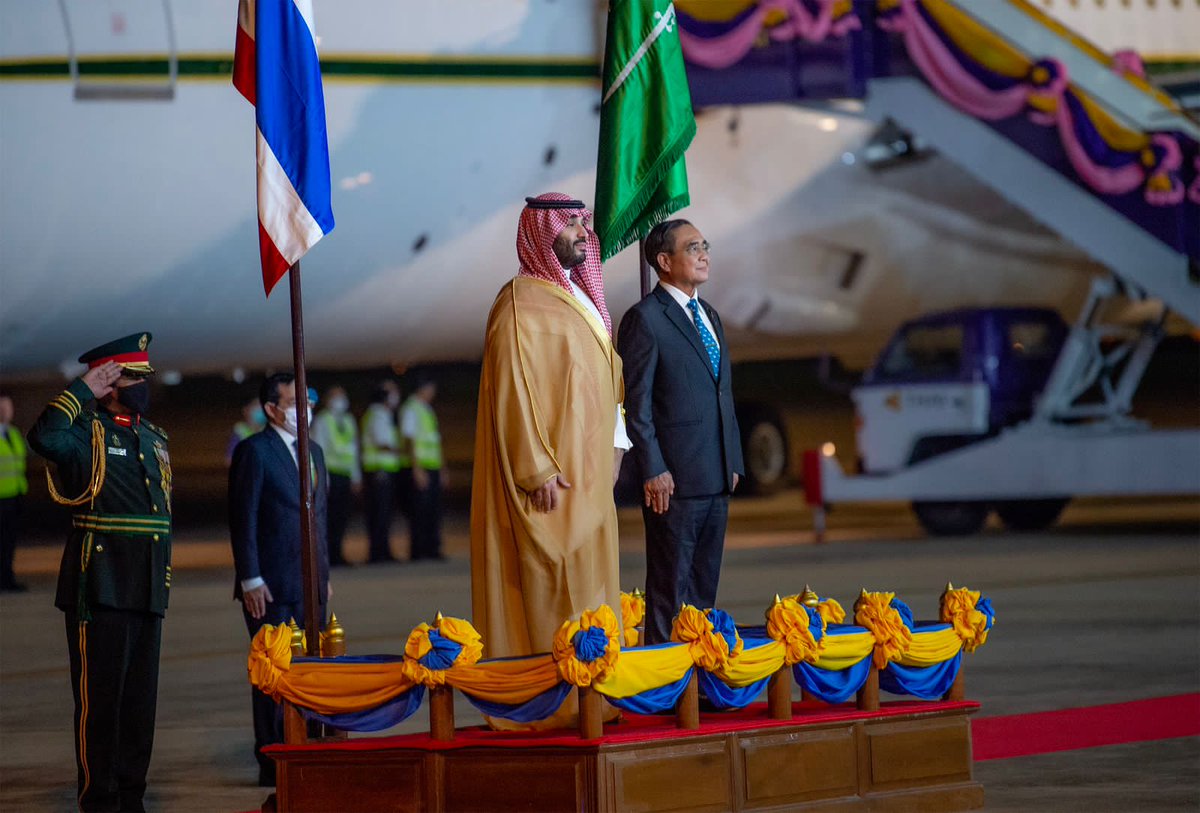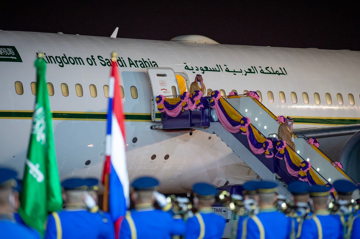 سمو #ولي_العهد يصل إلى العاصمة التايلندية #بانكوك في زيارة رسمية، وفي مقدمة مستقبليه دولة رئيس الوزراء وزير الدفاع في مملكة #تايلند.