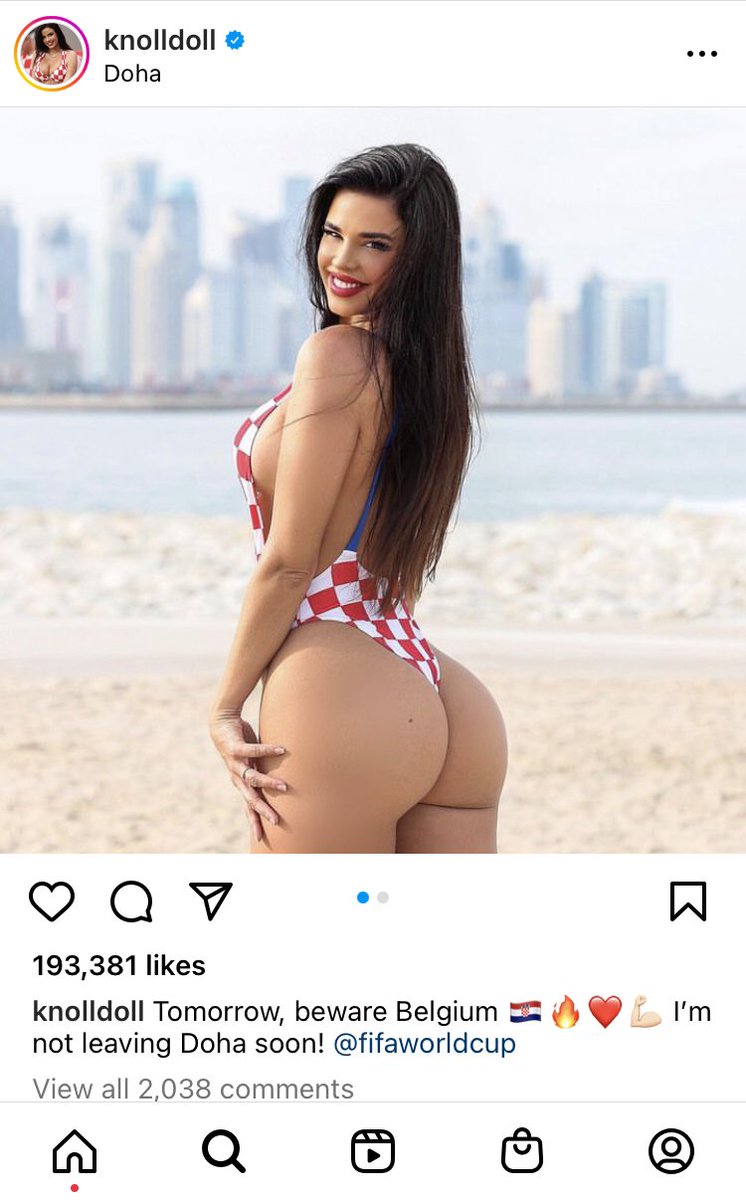 لا تزال المشجعة الكرواتية المودل "إيفانا نول" والتي تم دعوتها لتقديم خدمات إعلانية وتسويقية لـ #كأس_العالم_2022_قطر تتلقى إعجاب الجماهير ووسائل الاعلام في قطر ، بالاضافة إلى استمرارها في جلسات تصوير احترافية على شواطئ الدوحة.