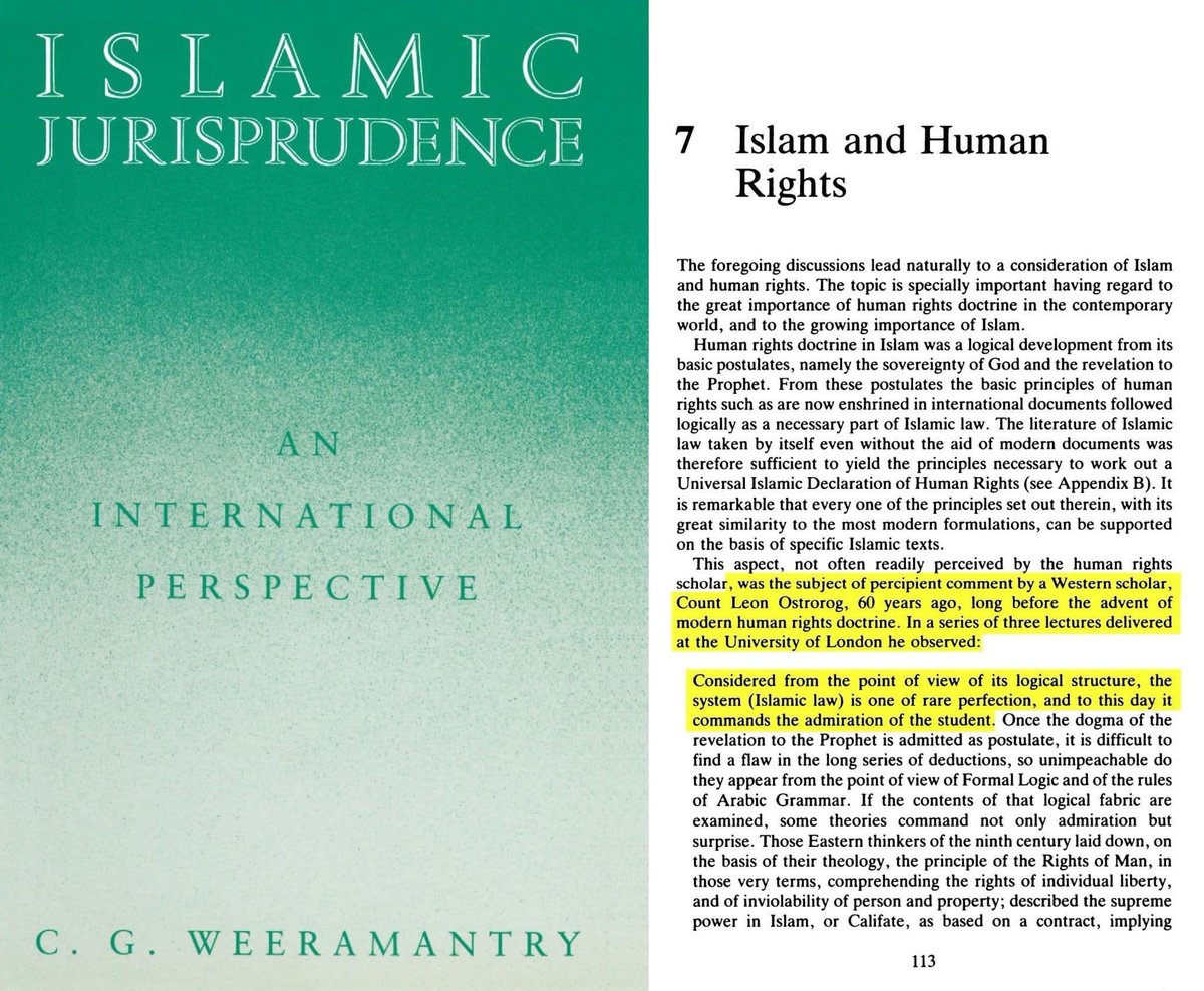 « النظام التشريعي الإسلامي كامل إلى درجة نادرة من ناحية بنائه المنطقي ؛ وهو إلى اليوم يثير إعجاب الدارسين ؛ يتم قبول الوحي علي النبي ومن الصعب العثور علي خلل في سلسلة طويلة من الاستدلالات ؛ لذا فهي لا يرقي إليها الشك من حيث المنطق الرسمي. »
