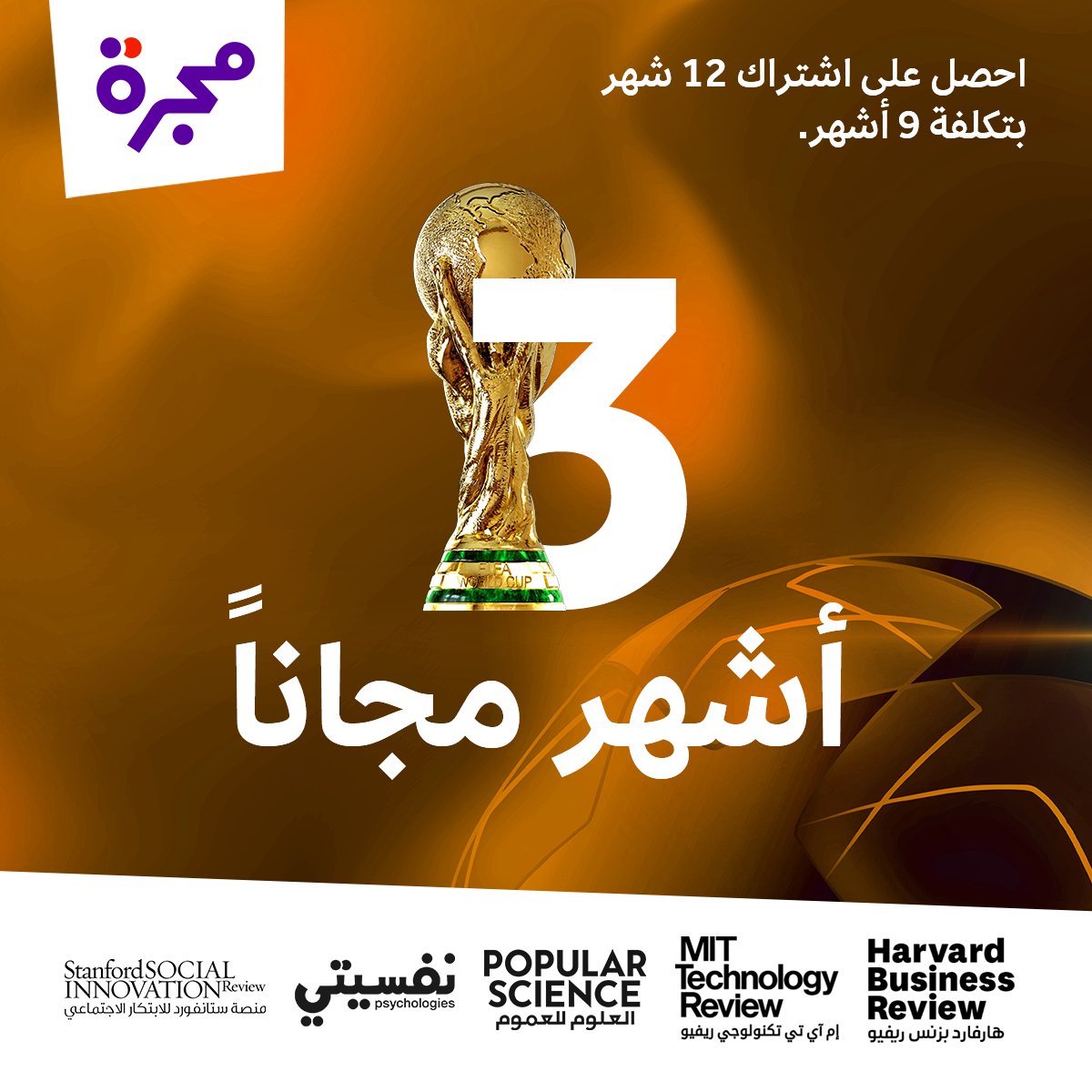 بمناسبة انطلاق #كأس_العالم، احصل على اشتراك 12 شهراً بتكلفة 9 أشهر فقط من #مجرة.