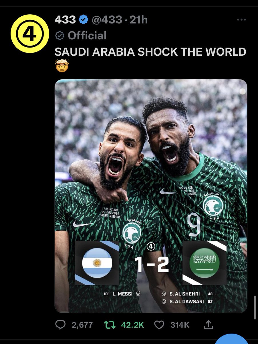 الأرجنتين جاثية على ركبها.. بعد فوز مستحق وتاريخي من #السعودية