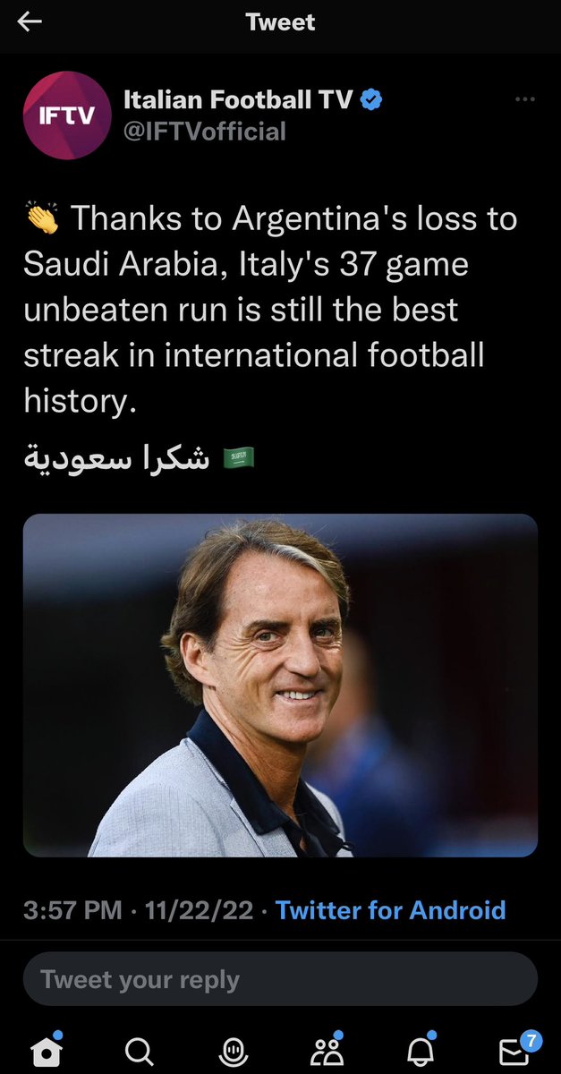 روتيرز: #السعودية فازت في مباراة يعتبر إحصائيا شبه مستحيل،ولهذا كسرت الرقم العالمي الذي لم يكسره أحد من ٧٠ سنة!