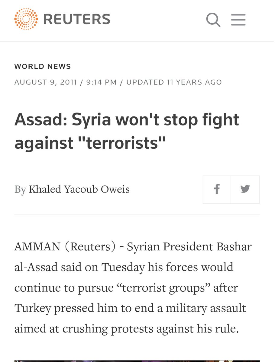 ۲۰۷- آمیخته با سرکوب آنها توسط شبه نظامیان بعثی، شیعه و علوی". روشن کردن این فیوز در سوریه برای اسد کاری به شدت آسان بود. مثل هر حکومت در حال سقوط دیگر، کلید آلترناتیو ها به دست حکومت در قفل میچرخید. قبلا از پیامدهای آن در رشته توییت زیر نوشتم!