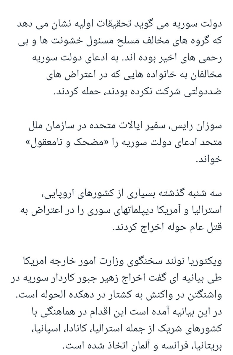 ۲۲۴- گانه در مورد محله التضامن دمشق نوشتم، نحوه جنایات نیروهای دفاع ملی کم و بیش به همین شکل بود.