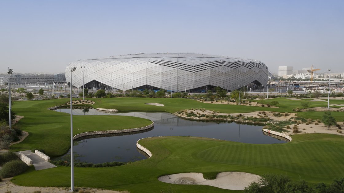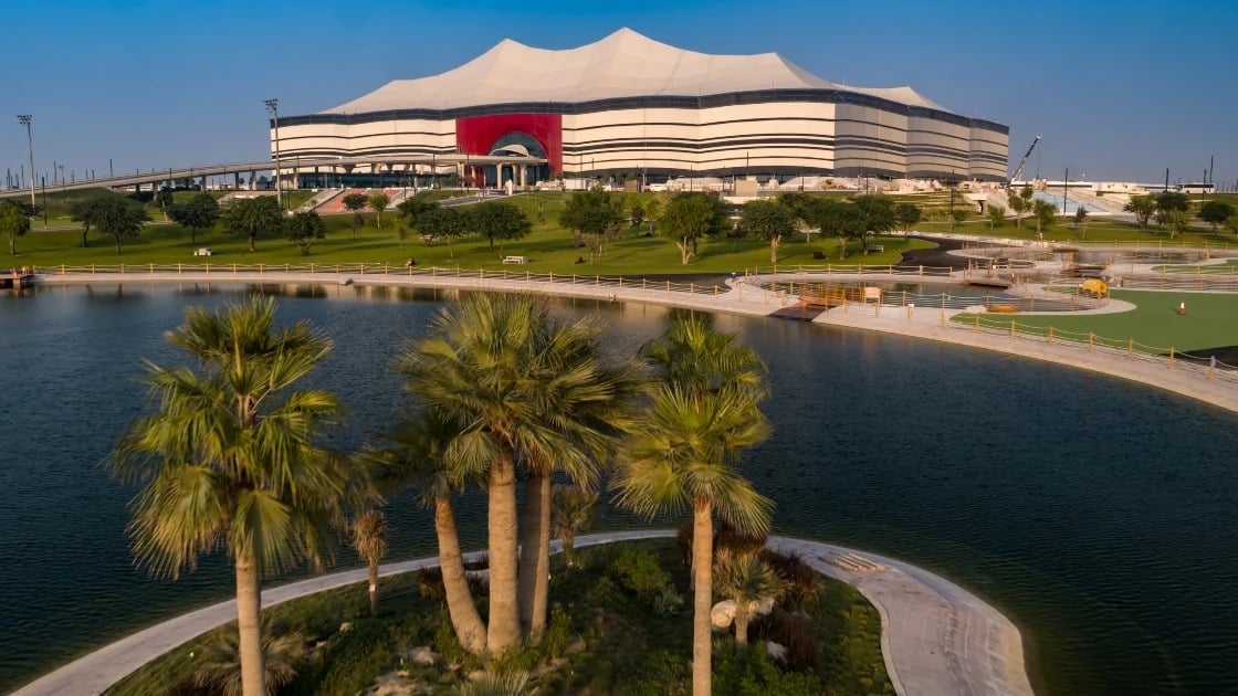 ٣. استاد الجنوب الفكرة التصميمية: مستوحى من أشرعة قوارب الداو التقليدية، التي يستخدمها غواصو اللؤلؤ من المنطقة، يُشير السقف المنحني والجزء الخارجي إلى تاريخ الوكرة في الملاحة البحرية، مما يمنح المشاهدين الشعور بأنهم على متن سفينة المصممة: زها حديد يسع: ٤٠ ألف متفرج