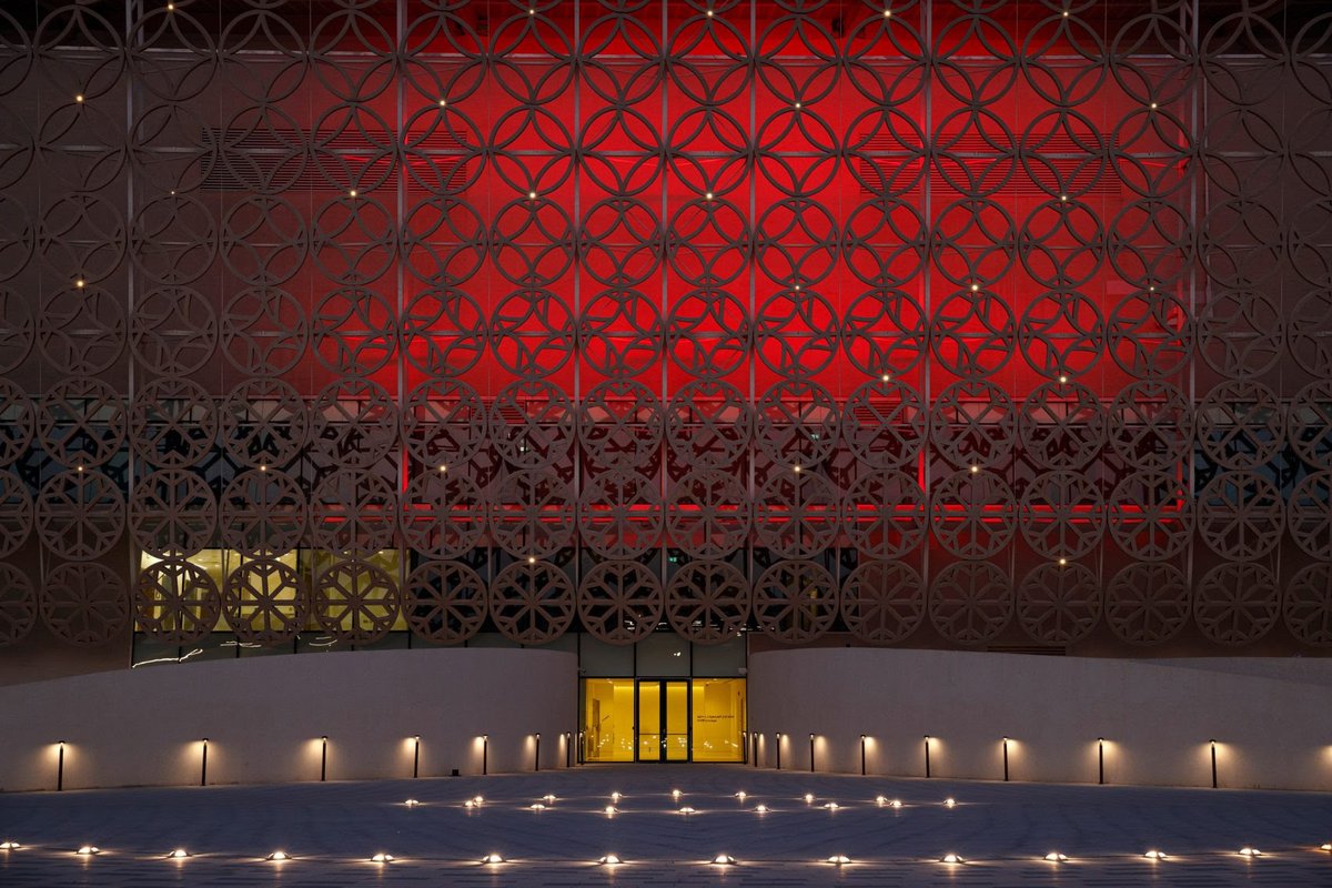 الفكرة التصميمية: يجسد الطابع العربي الإسلامي الذي يتميز بكرم الضيافة وحفاوة استقبال الضيوف، الشكل مستوحى من الأواني اليدوية التى وصلتنا من العصر الذهبي لفنون العمارة فى العالم الإسلامي. المصمم: نورمان فوستر اند بارتنر ✨️ السعة: ٨٠ الف