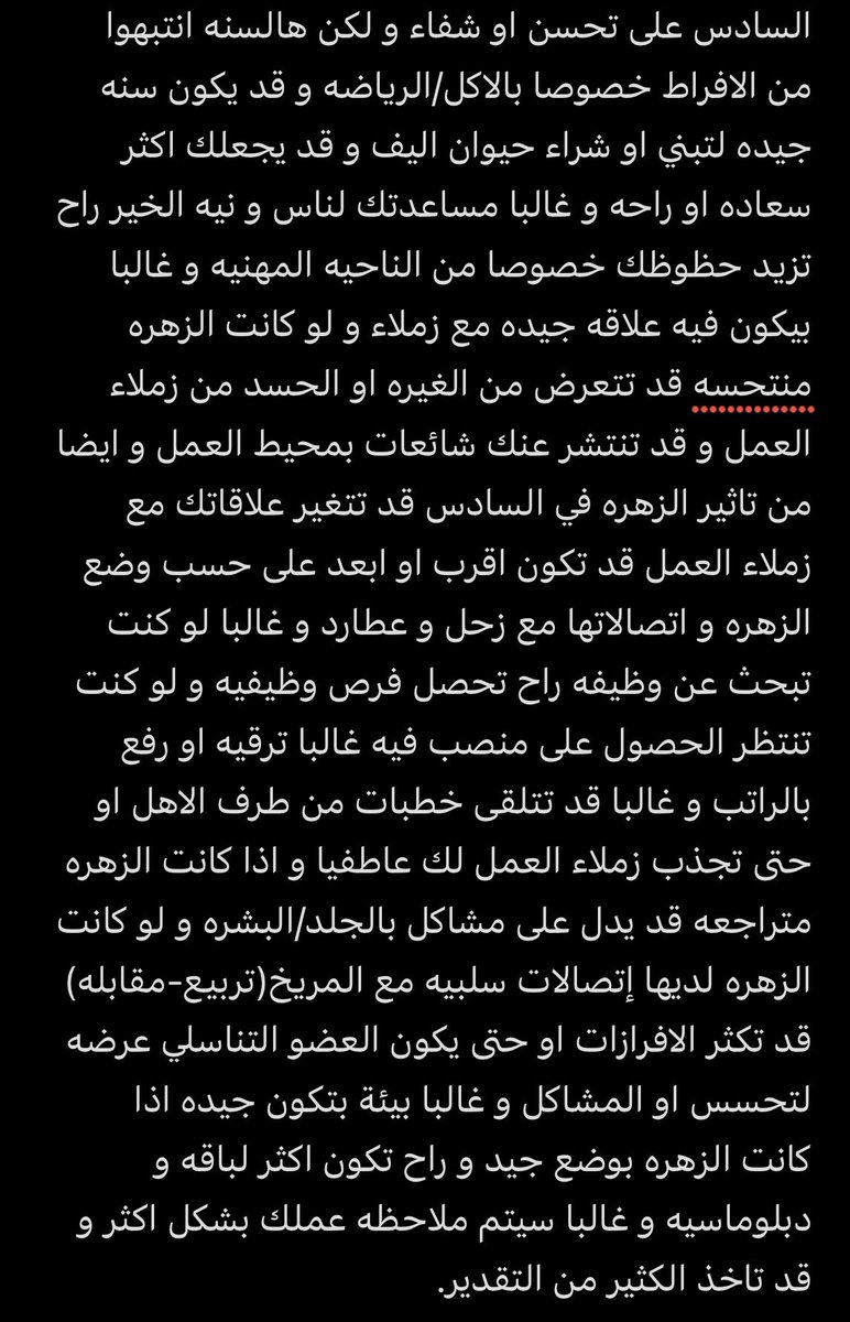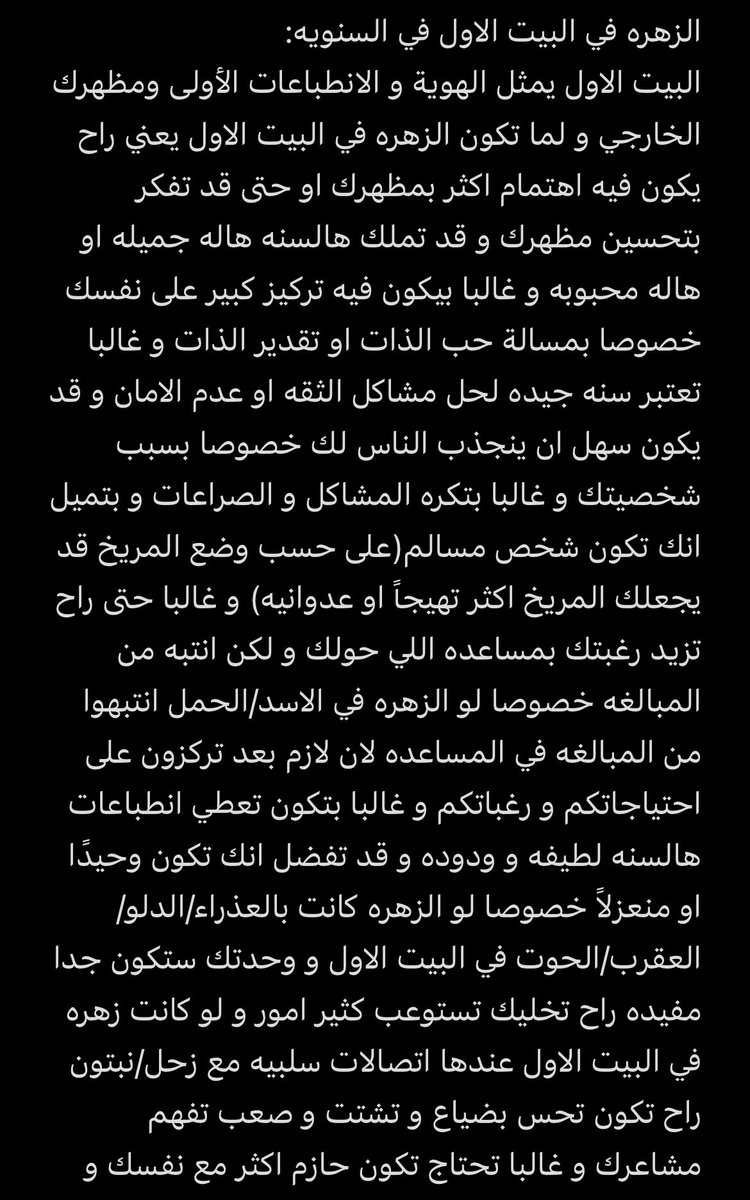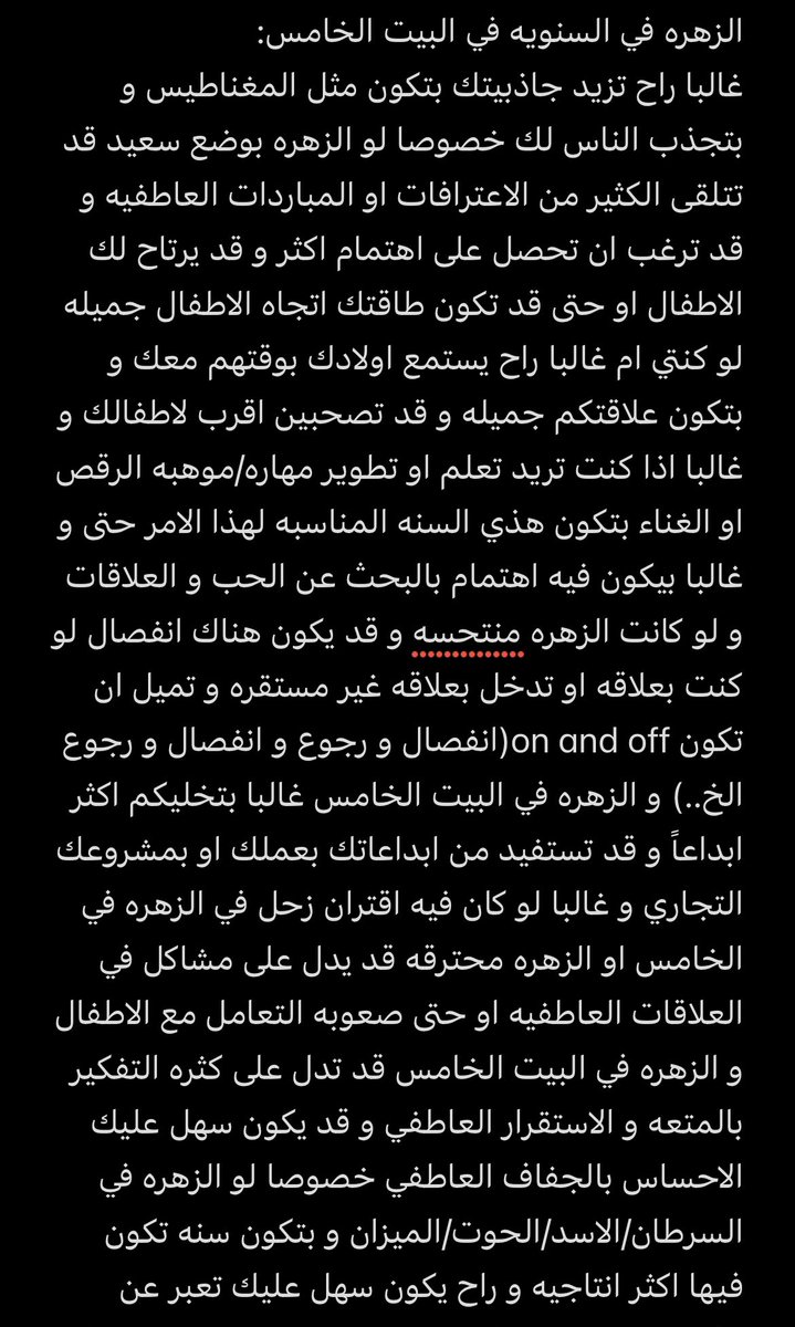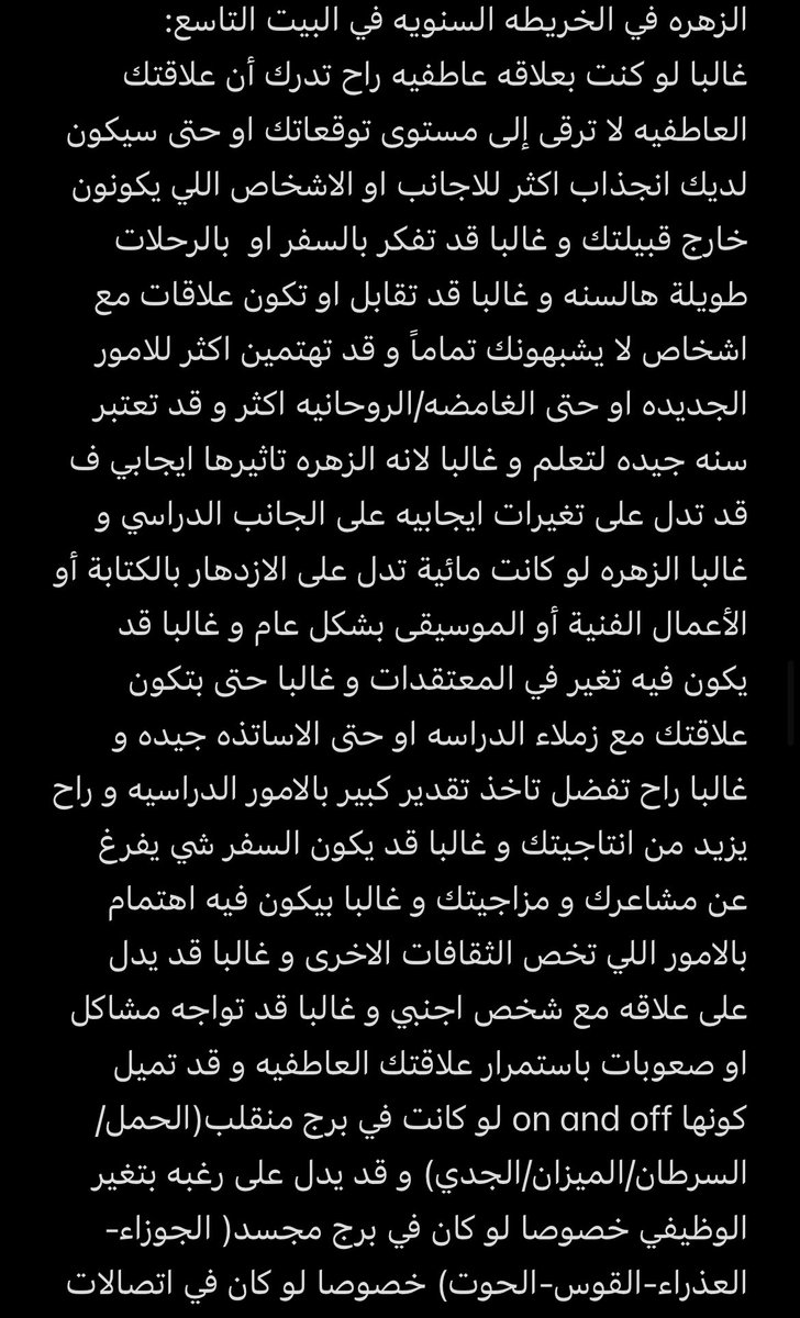 ثريد الزهره في جميع البيوت في الخريطه السنويه مع جميع الاتصالات بشكل مفصل✨✨: