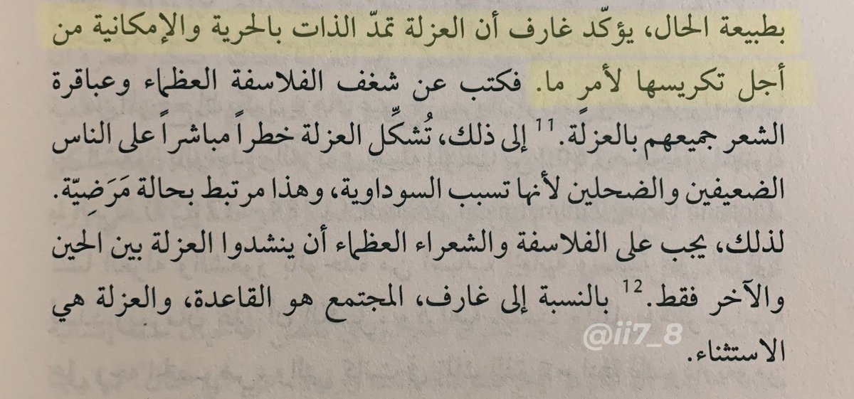 ٧- "يمكن أن تأتي أفضل لحظاتنا عندما نكون وحيدين، حيث تخبرنا العزلة بشيء مهم عن أنفسنا ومكانتنا في العالم ."