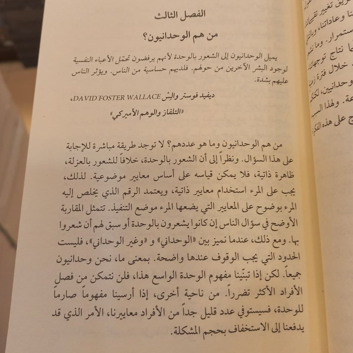 ٣- "ثمة أناس يقضون جلّ وقتهم بمفردهم دون شعورهم بالوحدة، وآخرون يشعرون بالوحدة بشكل استثنائي على الرغم من أنهم محاطون بالأصدقاء والعائلة معظم الوقت. "