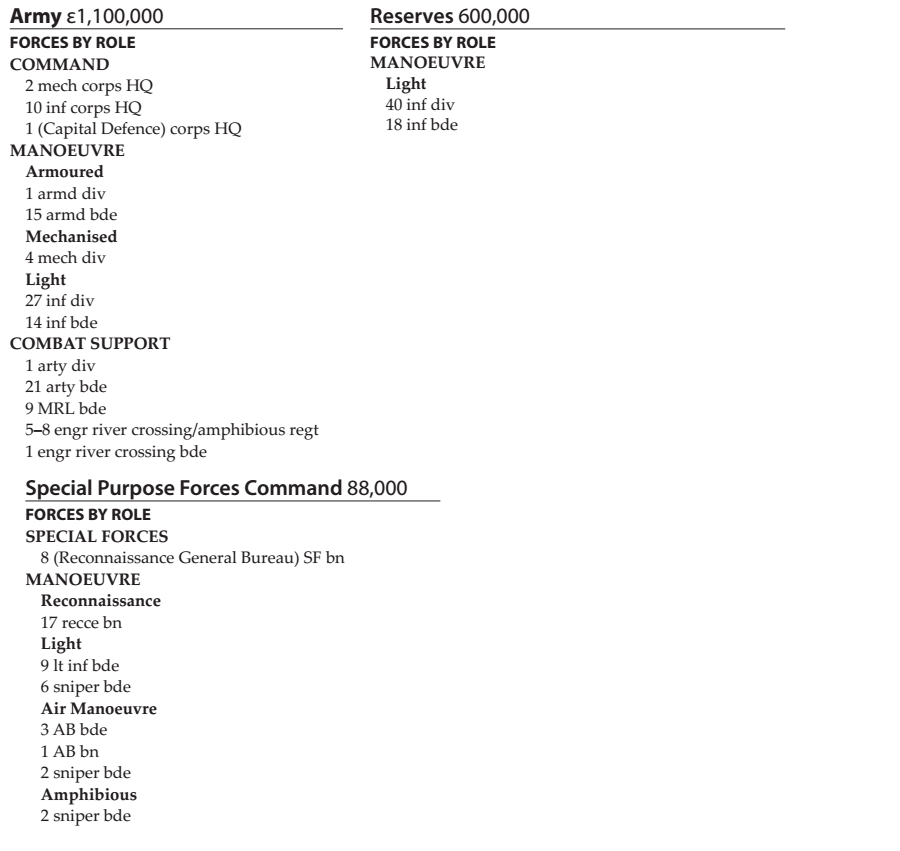 آن ارتش عظیم کره شمالی با دوره سربازی از ۱۷ تا ۳۰ سال(۱۳ سال!) به دست آمده و سربازان باید غذای خود را هم بکارند.