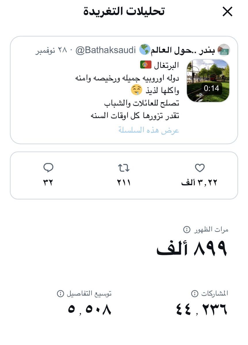 وصلت تغريدة البرتغال لقريب مليون مشاهد في اقل من يوم 🥰 مليون شكراً ومليون ورده لكم واحد واحد 🙏🏻