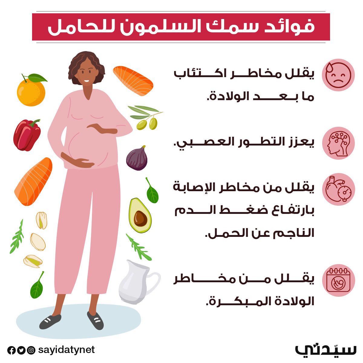 يُنصح بالابتعاد عن تناول أكثر من 340 غرام من سمك السلمون للمرأة الحامل أو المرضع، حيث أن السلمون يحتوي على الزئبق الذي قد يضر الطفل.