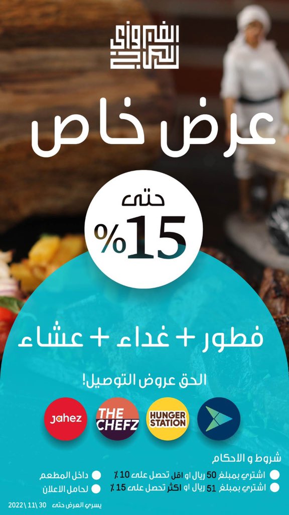 سلسلة مطاعم بدأت في ٢٠١٨م عندهم عدة فروع في حائل والمجمعة و ٥ فروع بالرياض المنيو متنوع والأكل لذيذ يستخدمون لحم نعيمي ودجاج بلدي في المشويات يفتحون من ٦ صباحاً موجودين في هنقرستيشن وجاهز وتويو وذا شفز وفيه عروض حالياً على التوصيل 🚗