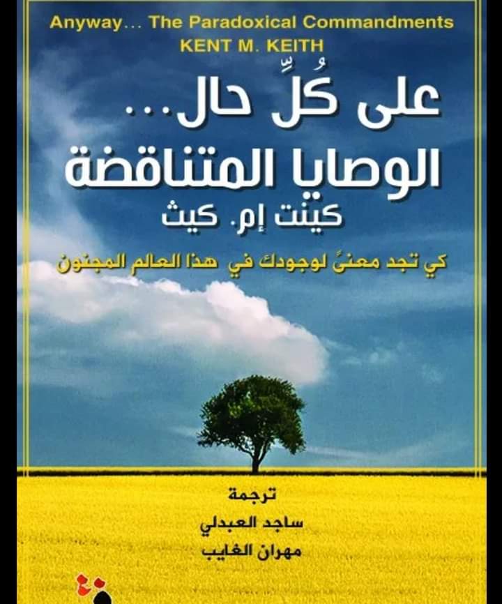كينت كيث Kent M. Keith” سنة ١٩٦٨ وحولها عام ٢٠٠٢م إلى كتاب سماه “على أية حال” “Anyway” والذي تربع على قائمة أكثر الكتب مبيعاً في أمريكا في تلك الفترة ولفترات طويلة.