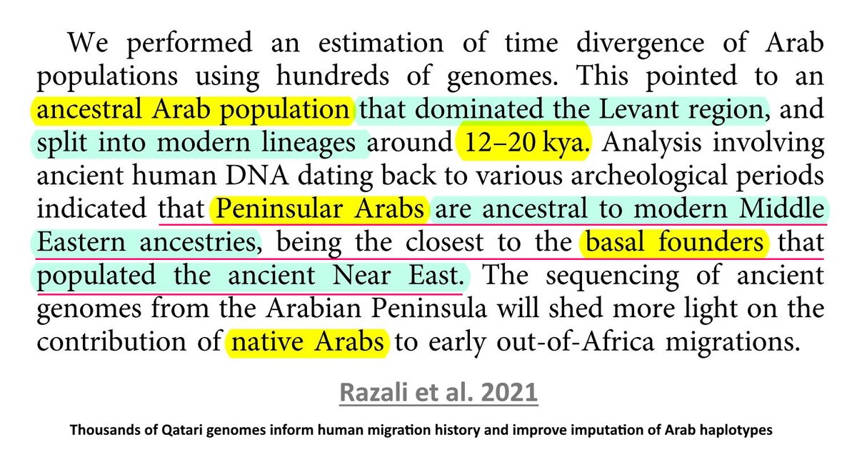 اعتبرت دراسة Razali et al. 2021 بأن أصول العرب الجزريين [Peninsular Arabs] تعتبر مصدرا للأصول الشرق أوسطية الحديثة