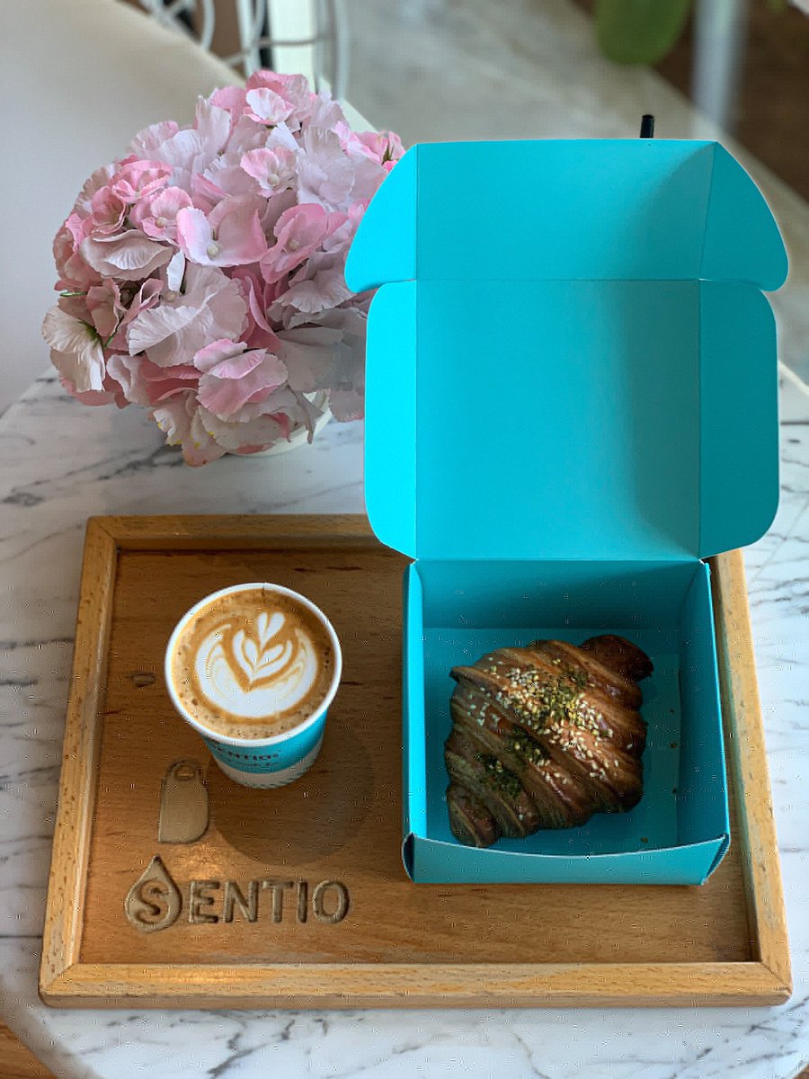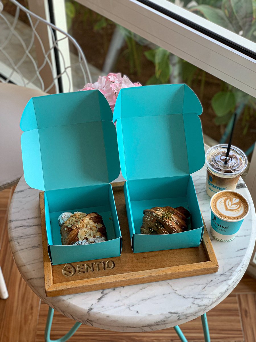 من المقاهي الجميلة بالرياض المكان ملموم وأنيق جلسات داخلية وخارجية للكل منزلين منتجات ومخبوزات جديدة تخبز وتحضر في معمل خاص فيهم عبارة عن حلى السينابون بنكهة التشوكلت والقرفة بالإضافة إلى كراوسون (سادة - تشوكلت - لوز - زعتر - جبن) ad