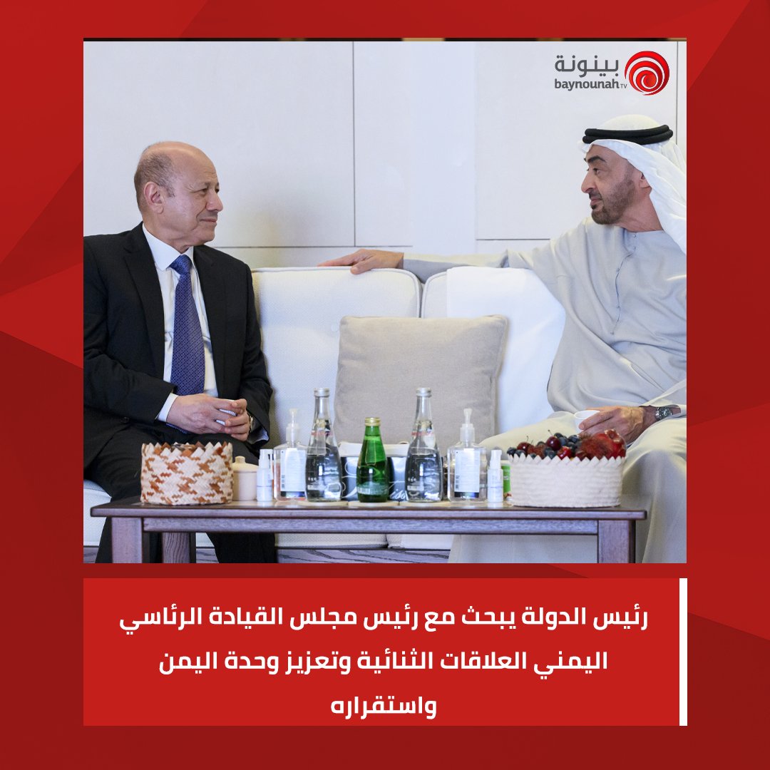 ورحب صاحب السمو رئيس الدولة - خلال اللقاء الذي جرى اليوم في قصر الشاطىء - برئيس مجلس القيادة الرئاسي اليمني، واطلع منه على آخر المستجدات على الساحة اليمنية