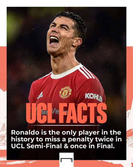 في دوري أبطال اوروبا رونالدو اللاعب الوحيد في تاريخ كرة القدم اللي ضيع 2 بلنتي في نصف النهائي، وبلنتي في النهائي، تاريخي يالدووون 😹