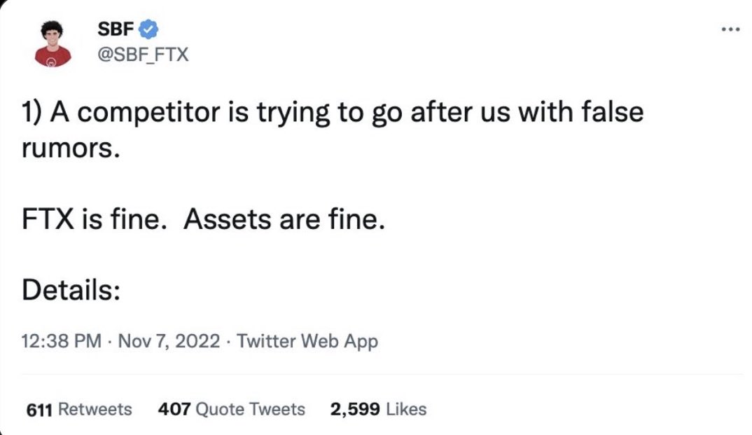 سام بانكمان: "في 6 و7 و8 نوفمبر، بدأت أشعر بالتوتر من أن #FTX لن تكون قادرة على معالجة عمليات سحب العملاء."